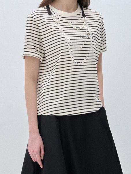[K-LUX]Detachable Pearl Strap T-Shirt -