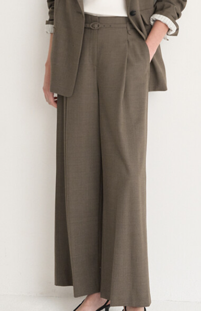 Wool Blend Belted One-Tuck Back Banding Pants -